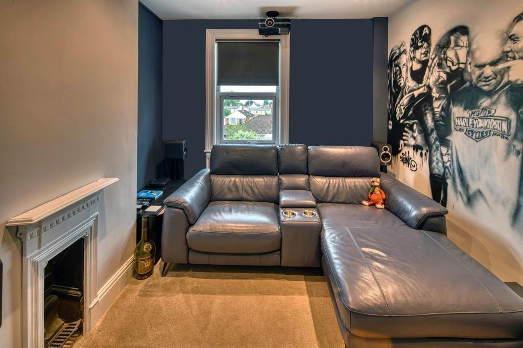 The first floor features the large new bathroom comprising roll top bath and separate shower cubicle, a large second bedroom with feature fireplace and duel windows to the front aspect and the third bedroom, currently utilised as a cinema room.